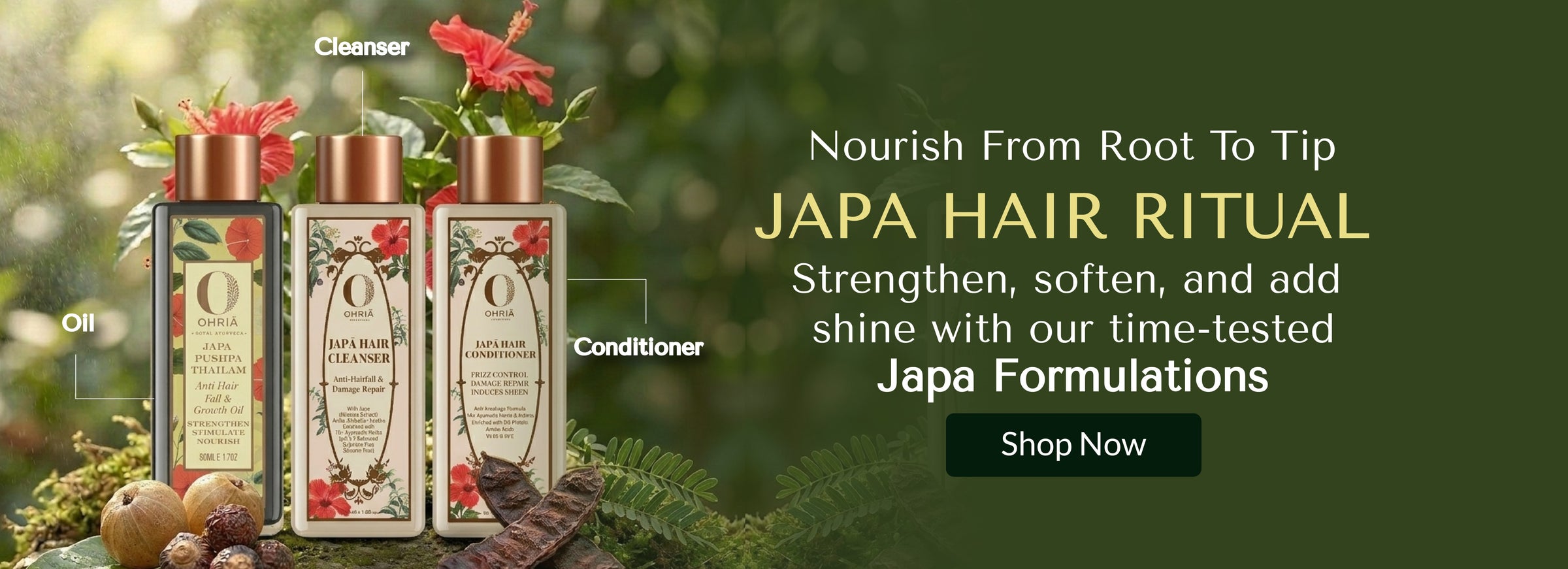 Ohria’s portfolio features iconic products like Japa Pushpa Thailam for hair fall, Shata Dhauta Ghee Cream for glowing skin, Banyan Root Hair Tonic for vitality, and Moringa and Ylang Ylang Hair Serum for protection. Other highlights include Turmeric Butter for pigmentation, Rose Shower Oil for smooth skin, and Amrut Beej Mask for a spa experience. Ohria also offers the Ultimate Massage Tool and the pioneering Kansa Wand. Our eco-friendly gift sets and handcrafted products reflect our commitment to timeless natural beauty and environmental sustainability.