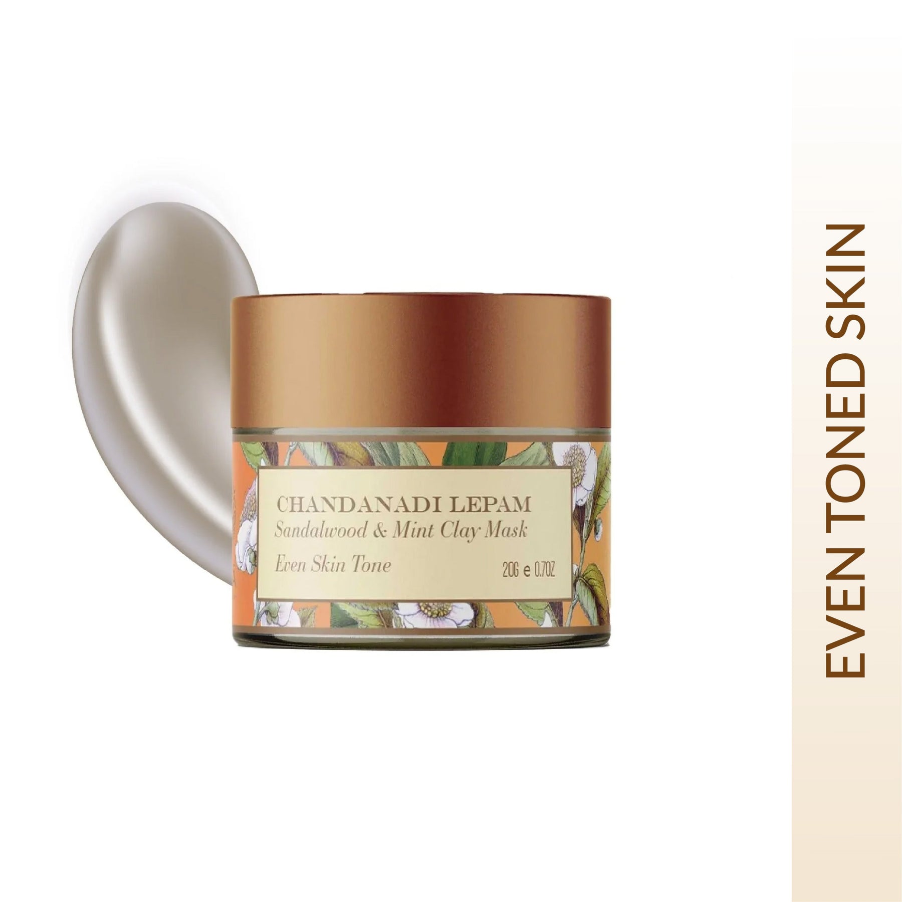 Chandanadi Lepam is a 100% natural clay masque suitable for all skin types, including acne-prone and sensitive skin. This cooling and firming formula is enriched with the blemish-reducing properties of sandalwood (Chandan), mint, and Multani mitti. Revered in Ayurveda for its tri-doshak qualities, sandalwood positively impacts all three doshas: Vata, Pitta, and Kapha. This all-natural blend cools, clarifies, and firms the skin while absorbing impurities and visibly evening out skin tone, thanks to its infusion of earth minerals and pure sandalwood powder. Additionally, anti-inflammatory ingredients like calendula, neem, camphor oil, and peppermint essential oil work together to relieve blemishes and decongest the skin.