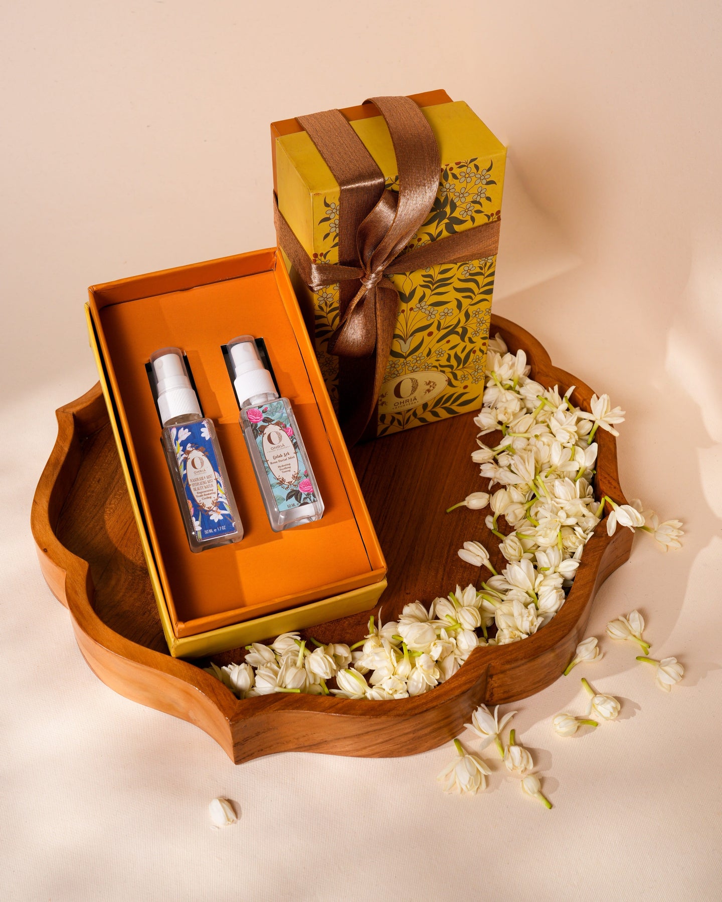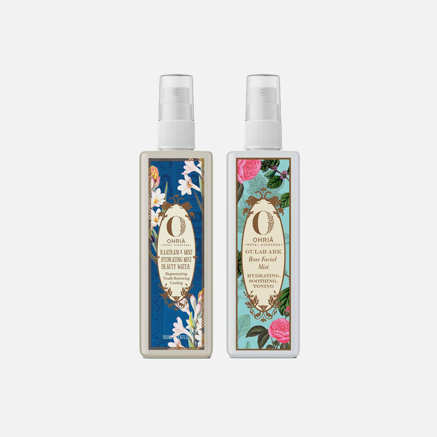 Discover the purity of hand-plucked blooms in this refreshing duo of hydrating mists. Raatrani & Mint Facial Mist cools, balances, and adds a natural glow, while Rose Facial Mist hydrates, tones, and revives with the essence of steam-distilled Indian roses. Together, they create a fragrant, skin-reviving ritual—perfect for daily care and as a gift of pure indulgence.
